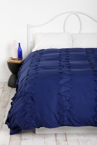 I think this duvet cover would go great with the ugly rug. It has just enough texture, to blend with the pattern of the rug, and the navy blue flows well with the "puke green" and brown in the rug. This duvet cover comes to a total cost of $149.00. |